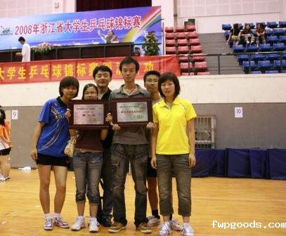 6月9日,由浙江省教育厅、浙江省体育局主办,我院承办,省大学生体协乒羽分会协办的2008年浙江省大学生乒乓球锦标赛在我院体育馆落下帷幕。我院乒乓球队在教练沈海伦老师的带领下,经过4天的激烈角逐,取得了乙组女子单打第六名、女子双打第六名和女子团体总分第三名的佳绩,同时张建宏和张丽娜同学被评为“体育道德风尚运动员”,我院乒乓球队也被评为“体育道德风尚奖”。