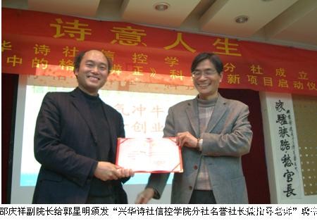 兴华诗社信息与控制技术学院分社成立暨《诗词创作网站中的格律辨正》大学生科技创新活动项目启动