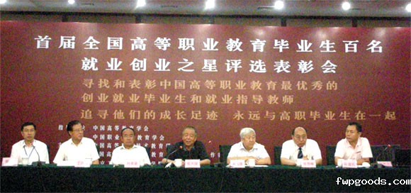6月20-22日, 首届全国高等职业教育毕业生就业创业之星评选表彰会在北京隆重召开。出席表彰会的领导有全国政协委员、中国高等教育学会会长、国务院学位委员会第五届委员会委员、教育部原副部长周远清,中国职业技术教育学会会长、国家总督学顾问、教育部原副部长张天保等领导。表彰会由中国高等职业技术教育研究会常务副会长、天津职业大学校长董刚,中国高等职业技术教育研究会副会长、武汉职业技术学院院长马必学主持。我校招生就业处副处长姜宇国在会上被评为“首届全国高等职业教育毕业生优秀就业指导师”(浙江省共三位)。