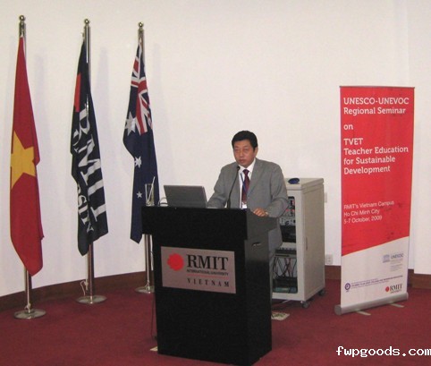 2009年10月5日至7日,联合国教科文组织国际职教中心委托澳大利亚皇家墨尔本大学在越南胡志明市举行面向可持续发展的职教师资教育亚太区域研讨会。来自联合国教科文组织国际职教中心、科伦坡职教师资规划学院、日本、韩国、澳大利亚、印度、菲律宾、泰国等国家的职教工作者30余人出席了会议。我校职教所所长、外事办主任黄春麟应邀参加会议,并作主旨演讲。
