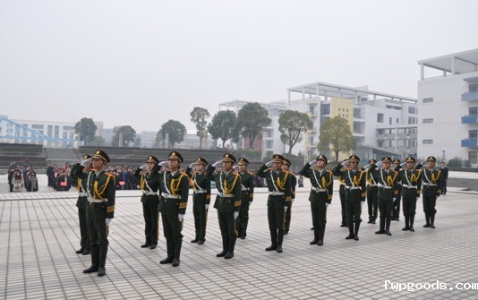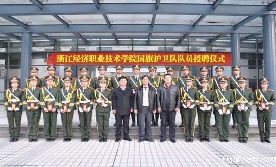 负责此次升旗重任的国旗护卫队,是在学校领导及相关职能部门的关心和支持下,由学工部、学生处和校团委新组建而成,实行统一训练、统一着装、统一管理运行模式,以责任、纪律,青春、荣誉为队训,肩负我校日常升降国旗的重要任务,是我校爱国主义、集体主义和安全教育的重要学生骨干力量。在2011年新年上课的第一天,由邵庆祥副院长为国旗护卫队队员颁发了聘书,并鼓励全体国旗护卫队队员要珍惜荣誉、刻苦训练、以最好的形象来展示国旗护卫队的风采,展现学校的精神风貌。