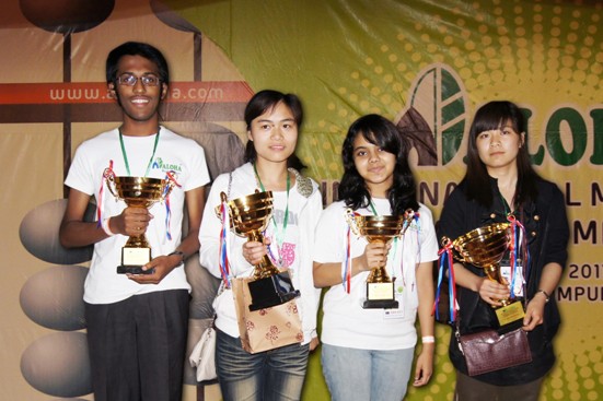 4月30日,我校财会金融学院潘锡洪、郭琴波同学参加了在马来西亚吉隆坡举行的2011年ALOHA 国际珠心算大赛,经过与各国选手的激烈角逐,潘锡洪、郭琴波同学分获特等奖(冠军)和一等奖。赛后,马来西亚珠心算总会会长刘水钦亲切接见了潘锡洪、郭琴波同学并合影留念。