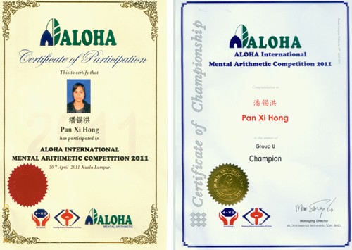 我校学生在2011年ALOHA国际珠心算大赛中再次夺冠