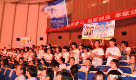 我校师生方阵在颁奖现场起立为李阳加油鼓劲
