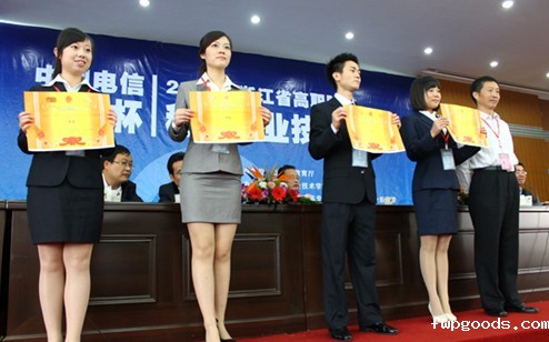 由浙江省教育厅主办的2011年浙江省高职院校秘书职业技能大赛于近日在湖州落下帷幕。全省共有19所高职院校31支代表队93名人员参加。我校代表队陈嘉敏、郑乐宁、董柯伟三位同学在斯静亚、樊旭敏、方梅、张卫清等指导教师的悉心指导下,充分发挥了团结合作、积极进取的精神,荣获了团体一等奖的优异成绩。