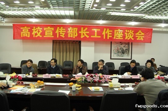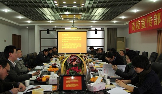 本次座谈会的议题是研讨对文化强省建设提出中国特色社会主义理论体系的普及计划;探讨高校宣传思想政治工作与大学生道德教育实践与载体创新。各高校宣传部长围绕主题畅所欲言。