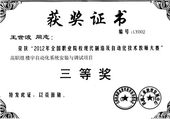 我校教师荣获全国职业院校现代制造及自动化技术教师大赛三等奖