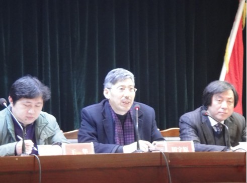 浙江省文化厅副厅长、正厅级巡视员、协会名誉会长田宇原(中),协会会长、西泠印社拍卖有限公司总经理、我校文管专业指导委员会特聘首席专家陆镜清(右),省文化厅市场处副处长王华(左)莅会