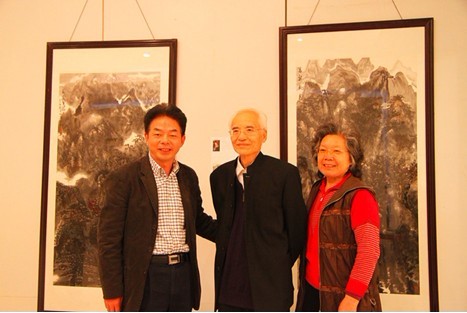 陈丽能院长与著名美术评论家夏硕琦夫妇在参展作品前合影