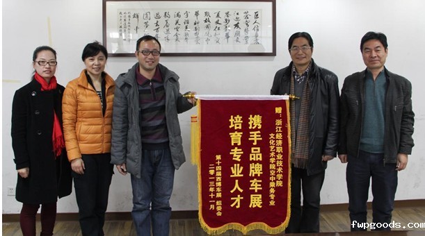 杭州西湖博览会车展组委会向我校空中乘务专业赠送锦旗