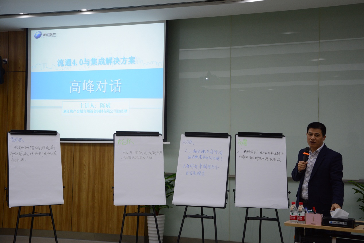 小组导师、物产金属台金部总经理陈斌亲临现场,用自己的亲身经历、丰富案例和学员分享了“加强与客户互动、考虑事件结果与业务风险、提前安排工作”等宝贵经验。各组还就“找钢网等网商平台对钢贸行业的机遇与挑战”、“新环保法对钢材市场的影响”等问题寻求导师解答。学员表示,这种最佳实践分享、与导师对话业务困惑的学习方式,零距离对接实际工作,切合需求,其他培训难以比拟。