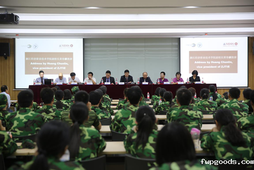 9月22日下午,我校举行2015级中新合作班新生开学典礼,我校副校长黄春麟、新加坡管理发展学院(MDIS)副总裁Chong Kwan Wai 和该校的国际部高级经理Ethan Wong ,以及我校教务处处长沈建国、管理技术学院院长吕超、商贸流通学院党总支书记金向阳、管理技术学院党总支书记徐晓玲、学生处副处长易际培、管理技术学院副院长张秋埜等出席。