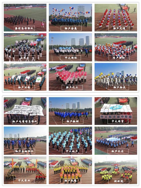 在开幕式上,我校学生进行了精彩的团体操表演。《紫气东来》温婉典雅、时尚创新,实现了中华传统文化与现代体育运动完美融合,代表了全体物产中大人回望精神家园、承继传统文化、打造现代企业的拳拳之心;《青春梦想》花浪翻腾、活力迸发,整齐划一的队列变换成大树、齿轮、浪潮、金字塔、雄鹰、朝阳,象征集团的事业兴旺发达,传递着集团排除万难、拼搏向上、永不停息、追求卓越的精神;《扬帆起航》金龙腾飞,气势恢宏,人体主题创意组字“明道”、“取势”、“优术”展示了集团大力推进“一体两翼”发展战略、加快实施“流通4.0”商业模式的灵魂所在!
