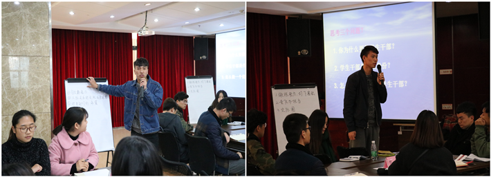 为了进一步加强我校学生干部队伍建设,切实提升学生干部队伍能力和综合素质,充分发挥学生干部队伍在我校建设和发展中的作用。日前,我校开展职场精英修炼营培训,学工部副部长、学生处副处长易际培担任主讲嘉宾,校团委、学生会、自治自律委员会等组织的学生干部代表参加培训。