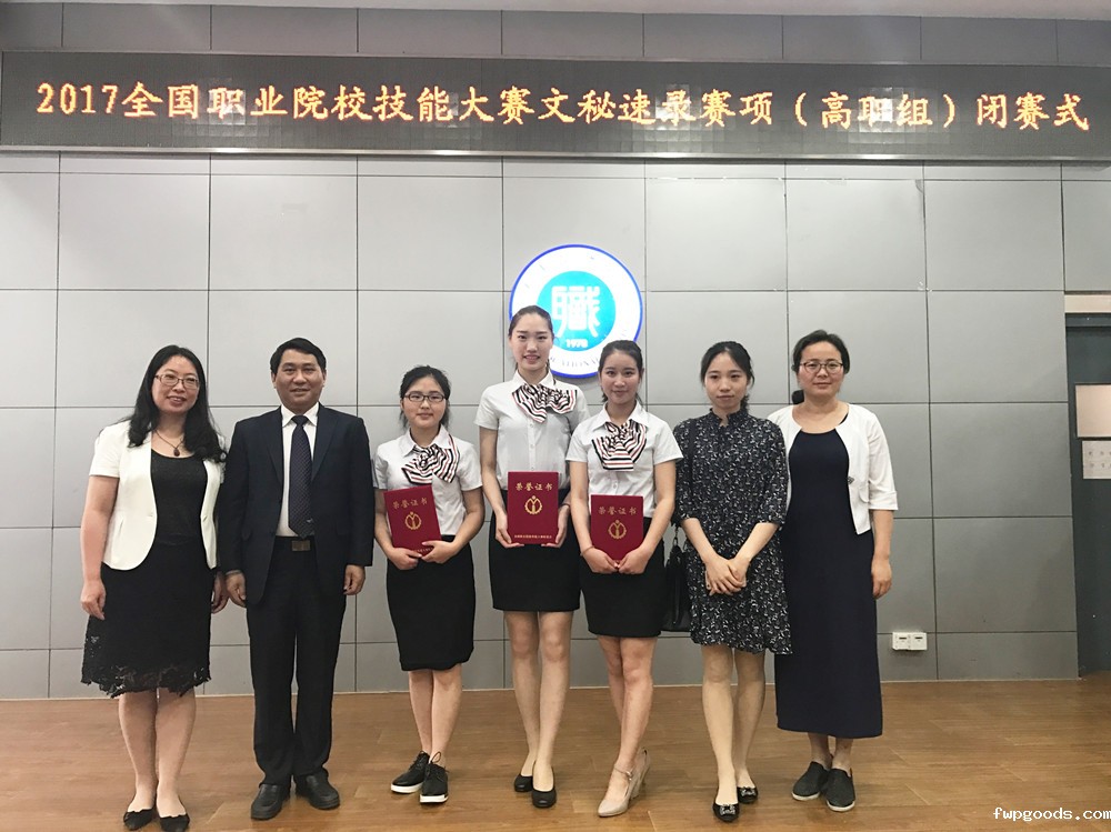 5月10日,2017年全国职业院校技能大赛“亚伟杯”文秘速录专业技能赛项在天津落下帷幕,在斯静亚、马小敏、郭倩倩三位老师的悉心指导下,我校文秘专业章丹丹、钱淑敏、诸辰辰三位同学组成的代表队荣获团体二等奖。
