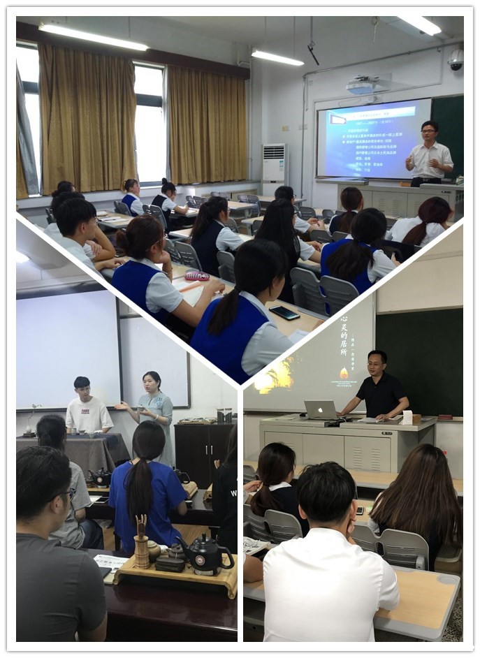 5月10日,龙井雷迪森庄园酒店的应珊珊女士给同学们带来了一堂茶艺茶道的实践操作课。她通过酒店的茶文化主题、茶文化特色、特色茶文化推广、茶艺文化四个方面,介绍了龙井庄园浓浓的茶文化。