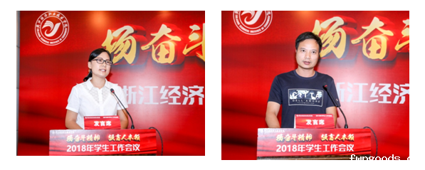 会议为新任班主任颁发了聘书,物流技术学院周美华老师和汽车技术学院班主任黄象珊老师分别做为辅导员代表、班主任代表上台做工作经验的发言。