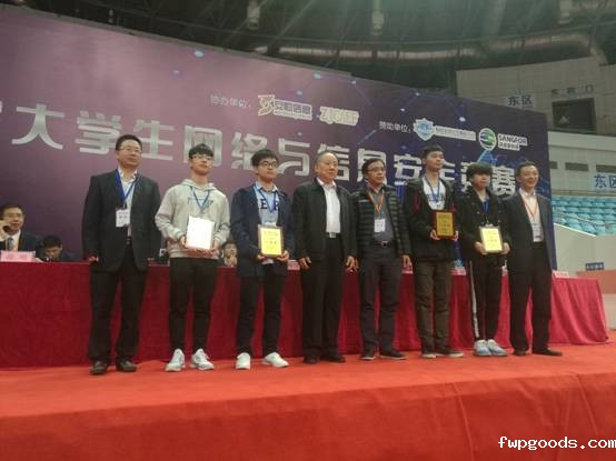 11月 4 日在杭州举办的浙江省首届大学生网络与信息安全竞赛落下帷幕。我校数字信息技术学院代表队郑鑫、林万里、梁何羽戈同学在毕晓东老师的指导下,喜获高职组一等奖,沈昌祥院士为我校学生颁奖。