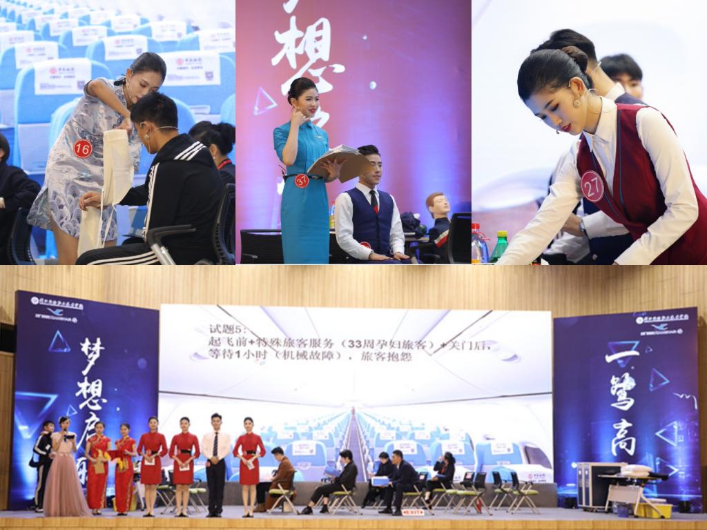 民航知识测试环节首次采取上机考试,从提前公布的题库中随机抽取题目作答,并现场公布考试成绩,模拟航空公司乘务员培训方法,给予选手紧张感和职业真实感;职业风采展示环节,参赛选手们使出万般武艺,将大赛推入高潮,给大家带来了一场视觉盛宴。客舱服务模拟环节,评委直接坐在飞机座位上对学生客舱服务的能力进行打分,充分考核选手的客舱服务能力、客舱广播能力以及应对突发情况的能力。赛后,专业评委一致认为,参赛选手专业能力过硬,表现优异,通过此次大赛的历练完全足以成为一名优秀的空中乘务员。