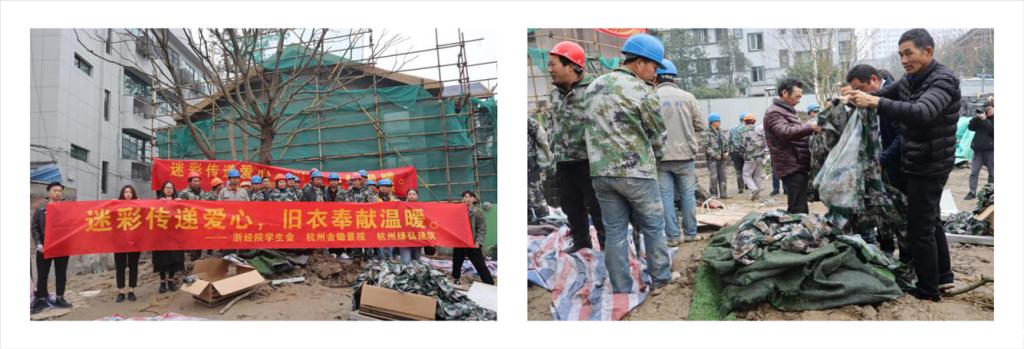 12月24日,我校学生会干部干事将经过整理的百余套军训服“护送”至杭州绿弘建筑工程项目工地,该项活动既解决了军训服闲置的问题,又深化了校园公益意识,使学生们能够更好地投身于爱心公益事业并为建设和谐社会添砖加瓦。