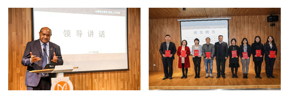 为深入贯彻执行国务院《国家职业教育改革实施方案》和浙江省人民政府《关于强化实施创新驱动发展战略深入推进大众创业万众创新的实施意见》等有关文件精神,发扬优良的传帮带精神,更好地培养脚踏实地干事创业的人才,打造“一站式创业教育集市”品牌,学校举行了创新创业导师聘任暨学生拜师仪式。因为浙经院是联合国教科文组织国际职业技术教育与培训联系中心,联合国官员裴伯庸便利用当天访校之机,全程观摩了该项活动。