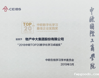3月29日,2019中欧数字化商业学习年度论坛暨第五届中欧TOP20数字化学习最佳企业实践奖颁奖典礼在中欧国际工商学院上海校区举行。物产中大管理学院网络学院荣获“2018中欧TOP20数字化学习卓越奖”,学院与安利(中国)、雀巢(中国)、松下电器(中国)等六家单位一同获此殊荣。