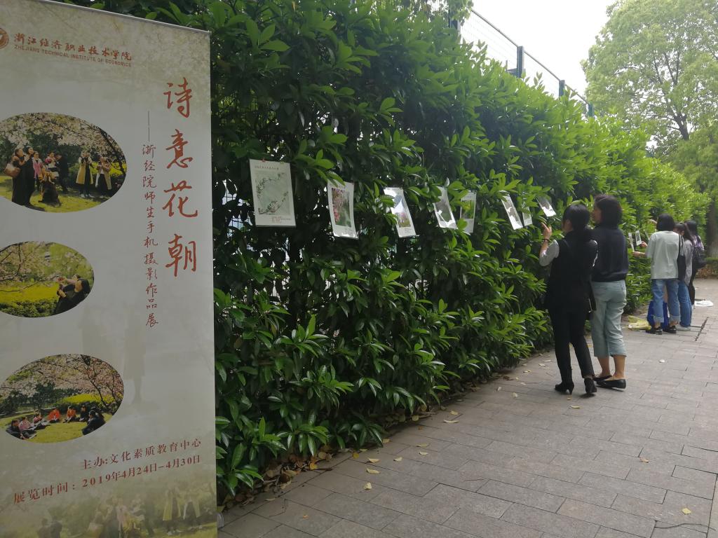 4月24日,“诗意花朝----浙经院师生手机摄影作品展”在我校网球场南边的林荫道展出。本次展览由文化素质教育中心主办,共展出近百件手机摄影作品,涵盖了校园到学生生活区每个美的角落。