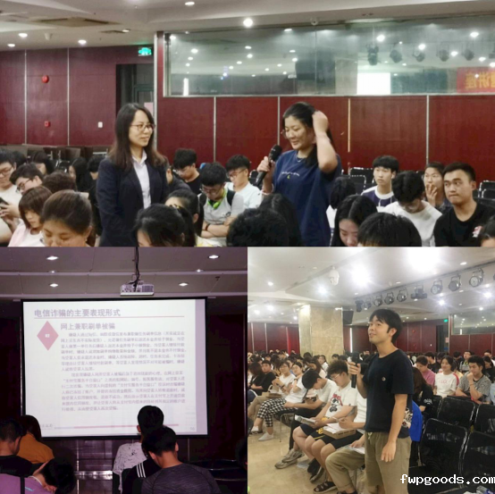 讲座中,郑远航通过讲述高额回报、暴利引诱等形式多样的诱骗手段和“投资理财”“私募基金”等典型非法集资实例,当面解答群众疑问和咨询,提醒师生要增强风险防范意识,坚决抵制高额回报的诱惑,远离非法集资。随后,郑远航通过生动的PPT展示、细致风趣的语言和典型案例的分析讲解了和“电信诈骗”等特点和表现形式,总结了“校园贷”的特点及作案手段,提醒大家注意识别网络金融诈骗。