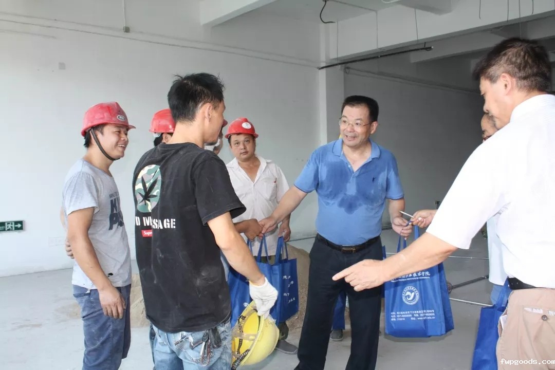 骆光林一行先后来到明月苑食堂装修、玉屏洲学生宿舍“四改六”、地坪改造、留学生宿舍改造、跨境电商产学研创新基地改造等工程施工现场。今年暑假学校的维修和改造工程虽然时间紧、任务重、要求高,但骆光林每到一个施工现场,都叮嘱工程负责人要严格贯彻“安全第一、质量第一”的原则。骆光林同一线施工人员热切交谈,嘱咐他们要注意防暑降温,并送上慰问品,感谢他们顶烈日冒酷暑地辛勤劳作。随后,骆光林还亲切慰问了招生就业处、校园110指挥中心、门岗安保和各楼宇值班室等坚守岗位的师生员工。