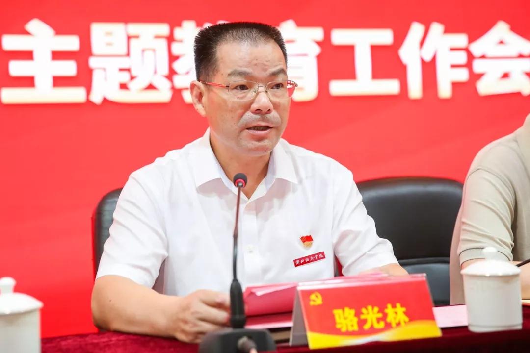 为了抓深抓实,确保高起点、高标准、高质量推进主题教育,骆光林代表学校党委讲了三点意见。