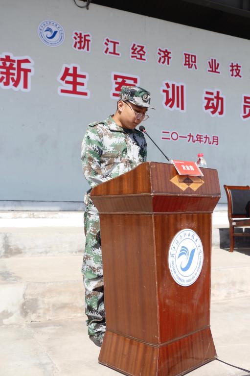 姜宇国为新生团团长黄威威授军训团团旗。副团长项栋代表教官对新生军训提出了全面而严格的要求。来自财会金融学院的田思途同学代表新生表达了对于军训的决心与承诺。