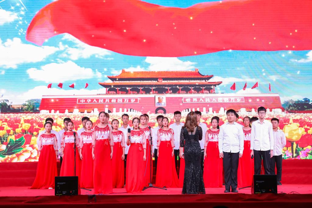 最后,全场合唱《我和我的祖国》,校园顿时成为一片歌唱的海洋,掀起我校庆祝中华人民共和国成立七十周年高潮。