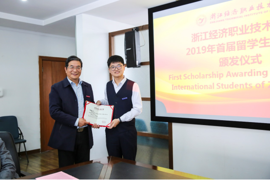 三位学子获得首届留学生奖学金,其中二等奖一人,三等奖两人。二等奖奖学金获得者是工商管理学院P421118班的TAN JIEHAO(陈捷皓),他来自马来西亚,将代表我校赴马来西亚参加世界咖啡大赛。从校长手中领到奖学金后,他高兴地说:“来到华体汇app全站版后,我接触到了在马来西亚从未接触过的文化,也学到了很多新的知识。能够获得奖学金,我要感谢老师们的付出,特别是外事办的老师给了我们留学生很多的关照!”