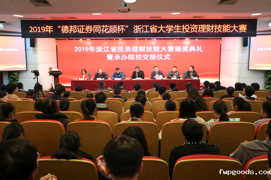 12月7日,由教育厅主办,我校承办的2019年“德邦证券同花顺杯”浙江省大学生投资理财技能大赛颁奖典礼暨承办院校交接仪式在学校崇学楼三楼报告厅隆重举行。