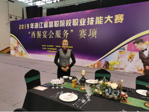 12月3日至6日, 2019年浙江省高职院校职业技能大赛“中餐主题宴会设计”、“西餐宴会服务”两大赛项分别在浙江商业职业技术学院和浙江旅游职业学院举行。我校酒店管理专业郑丽芳、高粱怡、喻流利、潘梦晴、沈植彦五位同学在阮晓明、王璐璐老师的指导和带领下,获得了1个一等奖、1个二等奖和2个三等奖的好成绩。