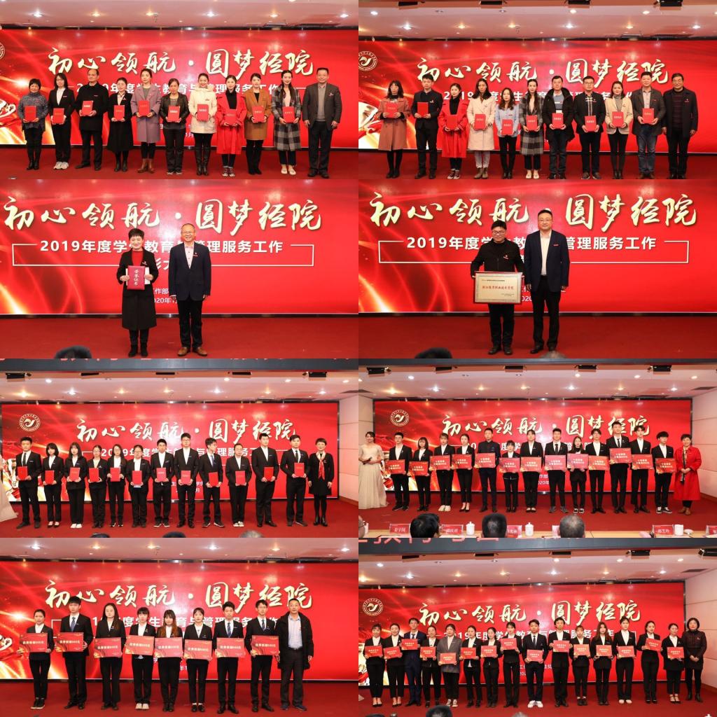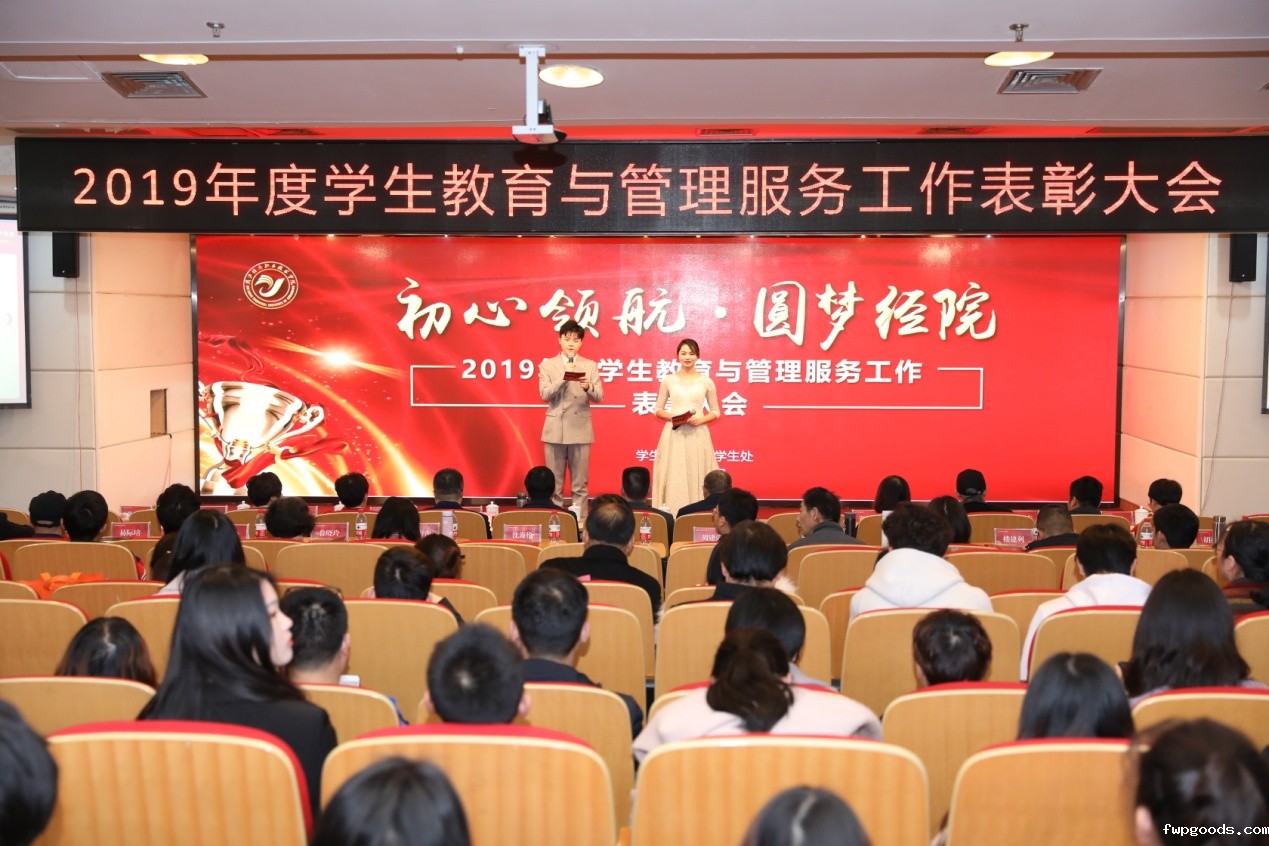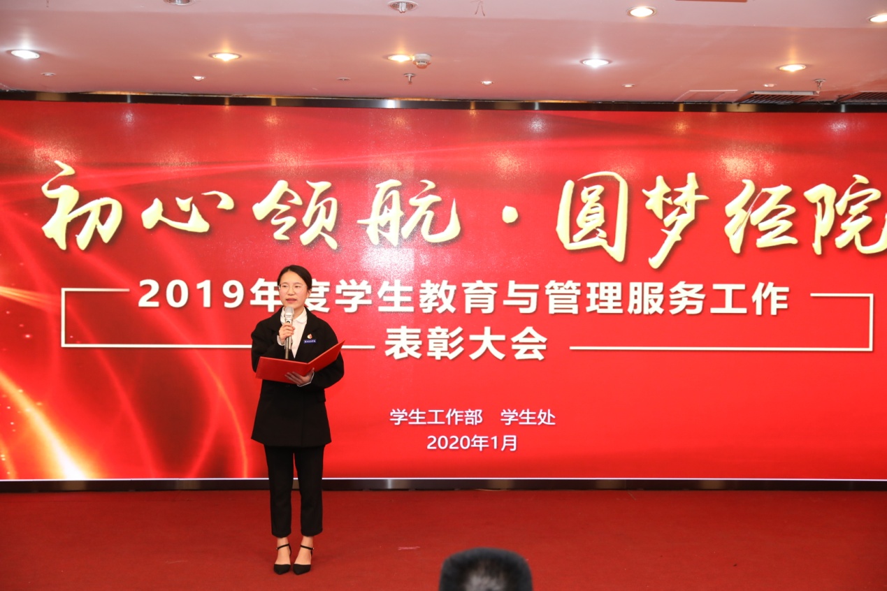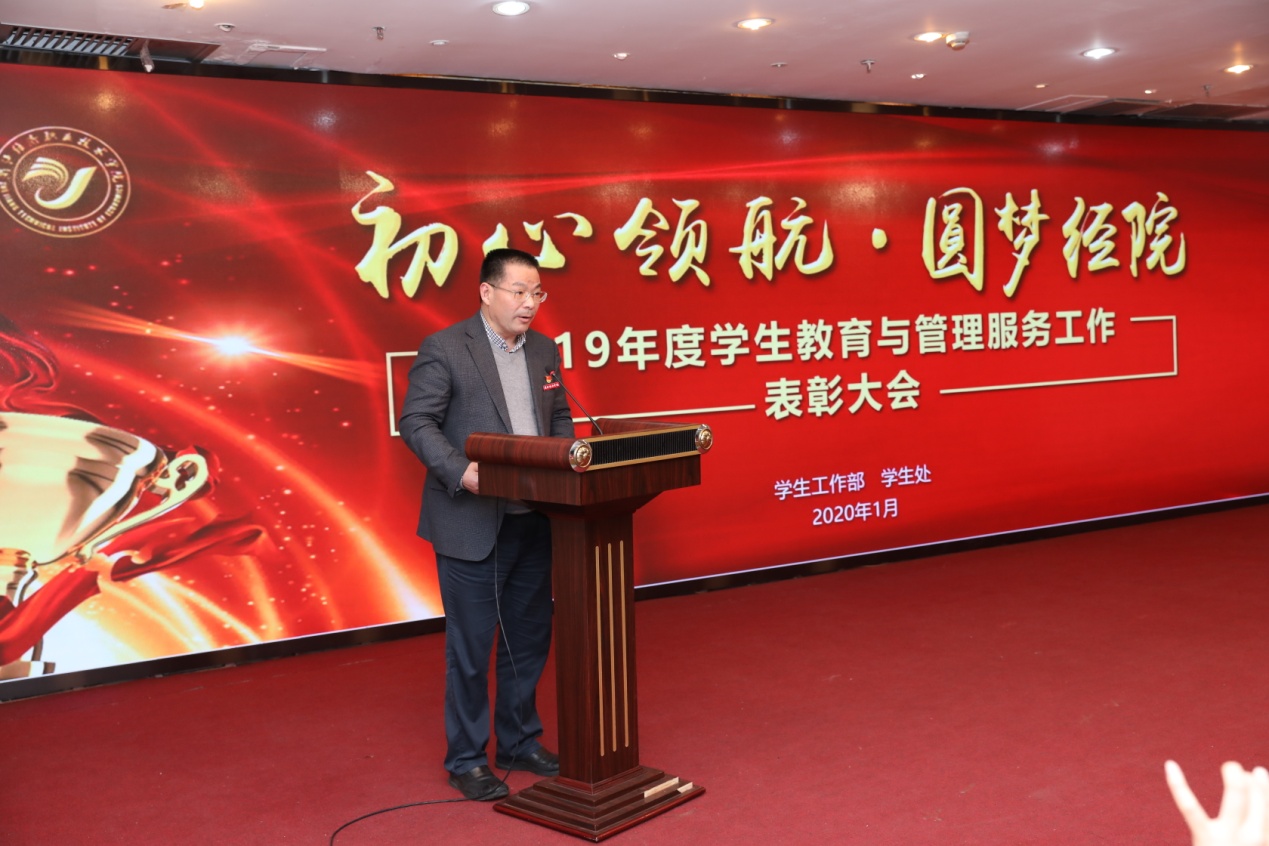 1月7日下午,我校在崇学楼三楼报告厅举行“初心领航·圆梦经院”2019年学生教育与管理服务工作表彰大会,校党委书记骆光林,党委副书记、校长邵庆祥,党委副书记吕红刚,党委委员、副校长姜宇国,党委委员、组织部部长、宣传部部长陈专和相关职能部门负责人,各二级学院党总支书记和专职副书记、梦想创业学院院长、马克思主义学院院长、全体辅导员、优秀班主任、学工部老师、获奖老师、获奖学生代表、学生观众共200余人参加了会议。