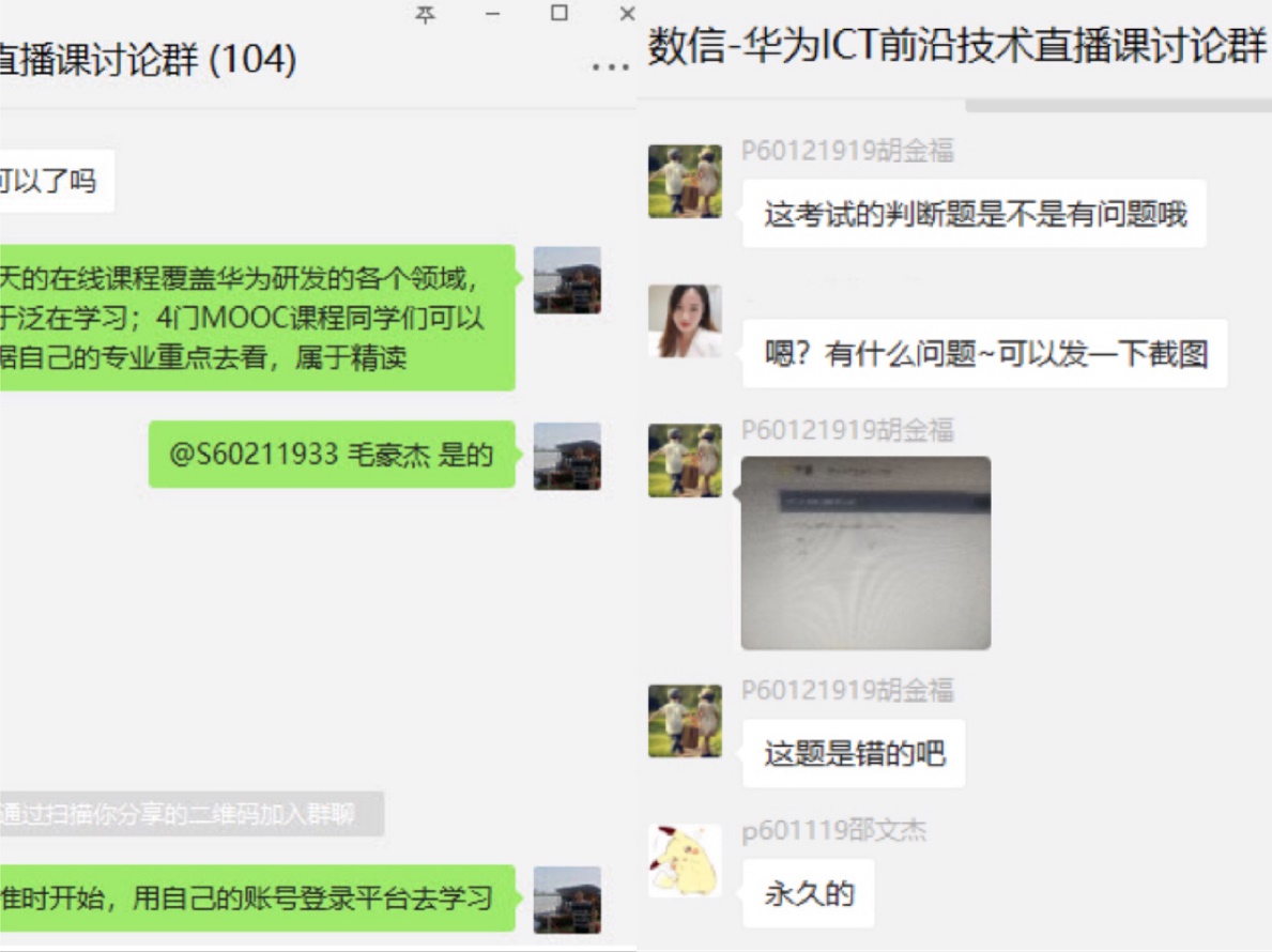 经过前期的组织宣传、学生报名,共有近百名学生参与直播课程和MOOC课程的学习,4名专业教师协助课程服务和对接工作。直播课堂上学生和老师在线互动积极,华为工程师和产品经理也在学院直播讨论群里热心指导,及时为同学们答疑解难。该课程视同专业选修课,由课程线上教学平台对学生学习情况自动考核,学习结束后总评成绩通过的同学将获得对应学分。