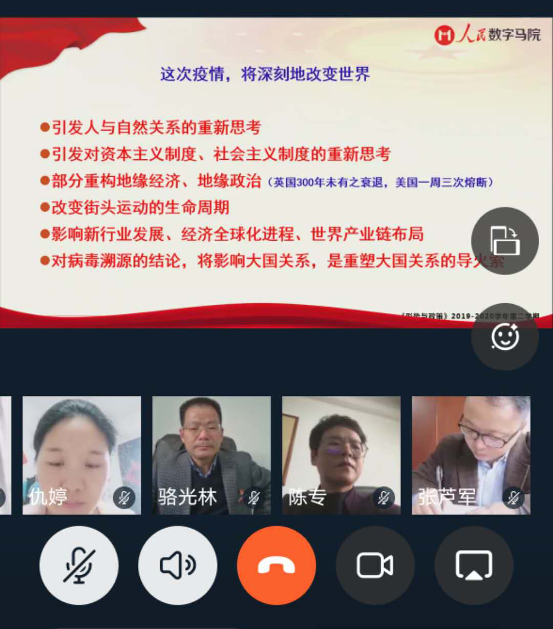郑教授从中外疫情数据对比开题,提出“中国做为人口最多的发展中国家,为何疫情防控远胜于西方发达国家?”的疑问,通过分析大量事例,概括出“党中央的坚强有力领导、各级党组织和广大党员干部的英勇奋战和牺牲奉献、全国一盘棋、集中力量办大事的社会主义制度优势、中国人民众志成城汇聚起的共克时艰强大正能量”五个“制胜之道”。在每一个观点的讲解中,郑教授都结合了最新的时政,观点鲜明、事例生动、讲解细腻,引人入胜。