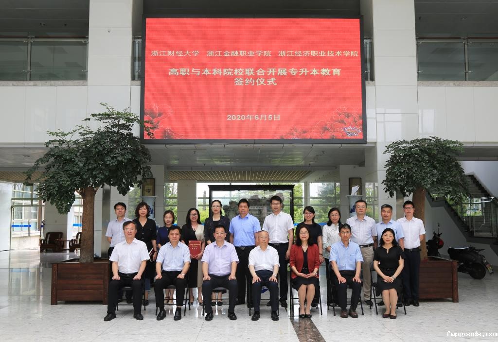 2020年6月5日,浙江财经大学与高职院校专升本人才联合培养签约仪式在浙江财经大学举行。党委书记骆光林代表学校作主旨讲话,并和浙江财经大学代表在联合办学协议书上签字。党委委员、副校长聂华,办公室、教务处、财会金融学院等相关负责人出席了签约仪式。
