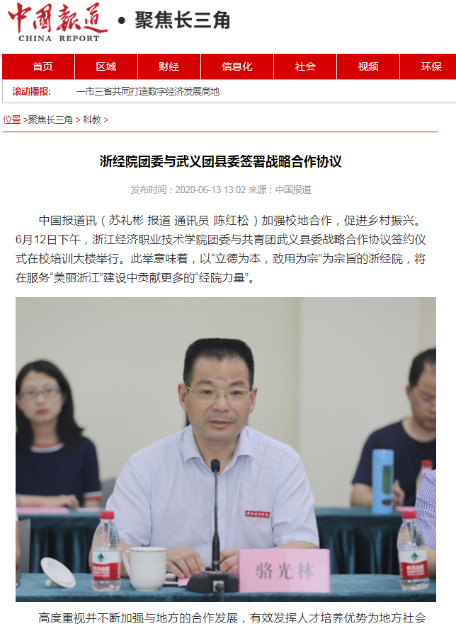 『媒体关注』我校团委与武义团县委签署战略合作协议受媒体报道