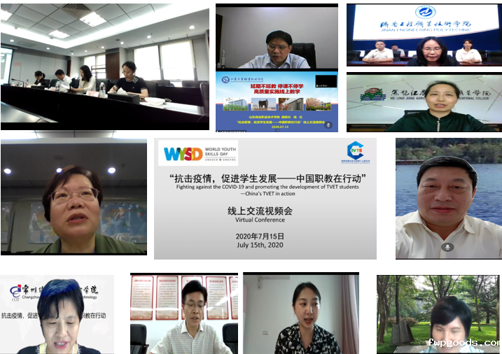 2020年7月15日,世界青年技能日,为响应联合国教科文组织号召,教育部职教所主办“抗击疫情,促进学生发展--中国职教在行动”线上交流视频会议,中国教科文组织全委会、教育部职成司、教育部职教所相关领导以及江西省教育厅厅长郭杰忠、广东省教育厅副厅长邢锋和部分高职院校领导代表参加了交流,我校作为教科文组织职教与培训联系中心应邀参会,会议由教育部职教所国际合作与比较研究室主任刘育峰教授和我校副校长黄春麟教授分别主持。