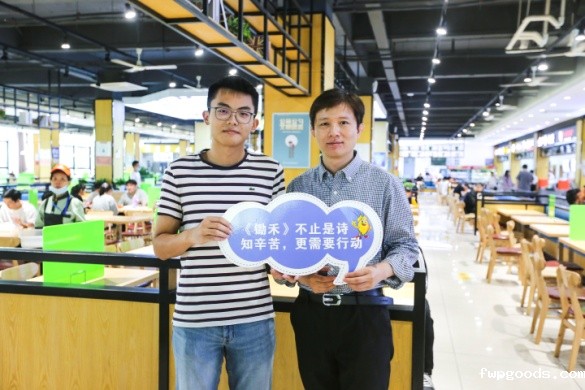 “倒掉的是剩饭,流走的是血汗”“谁知盘中餐,粒粒皆辛苦”“吃光盘中餐,不做‘剩男剩女’”......师生们亮出形象生动的标语牌,传递文明理念。