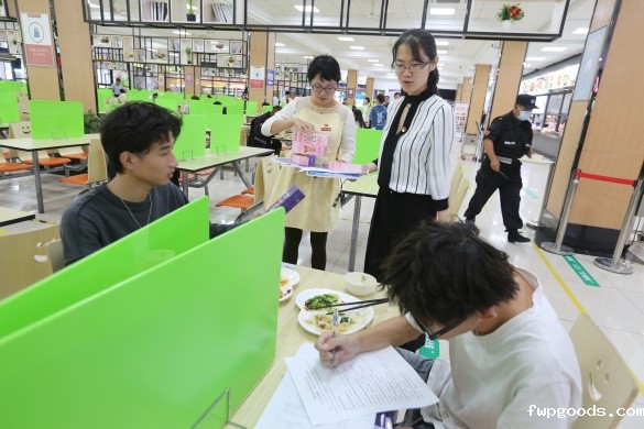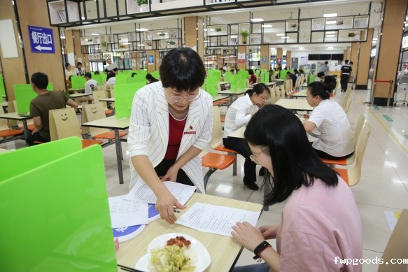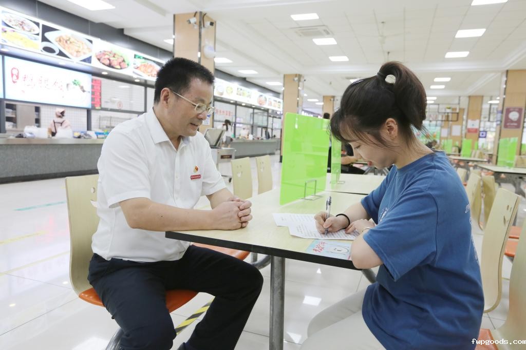 “每餐开销约多少?”“觉得食堂饭菜价格合理吗?”“有哪些要改进的地方?”支部的老师们设计了调查问卷,现场发放,对同学们就餐中的节约意识进行了针对性了解。