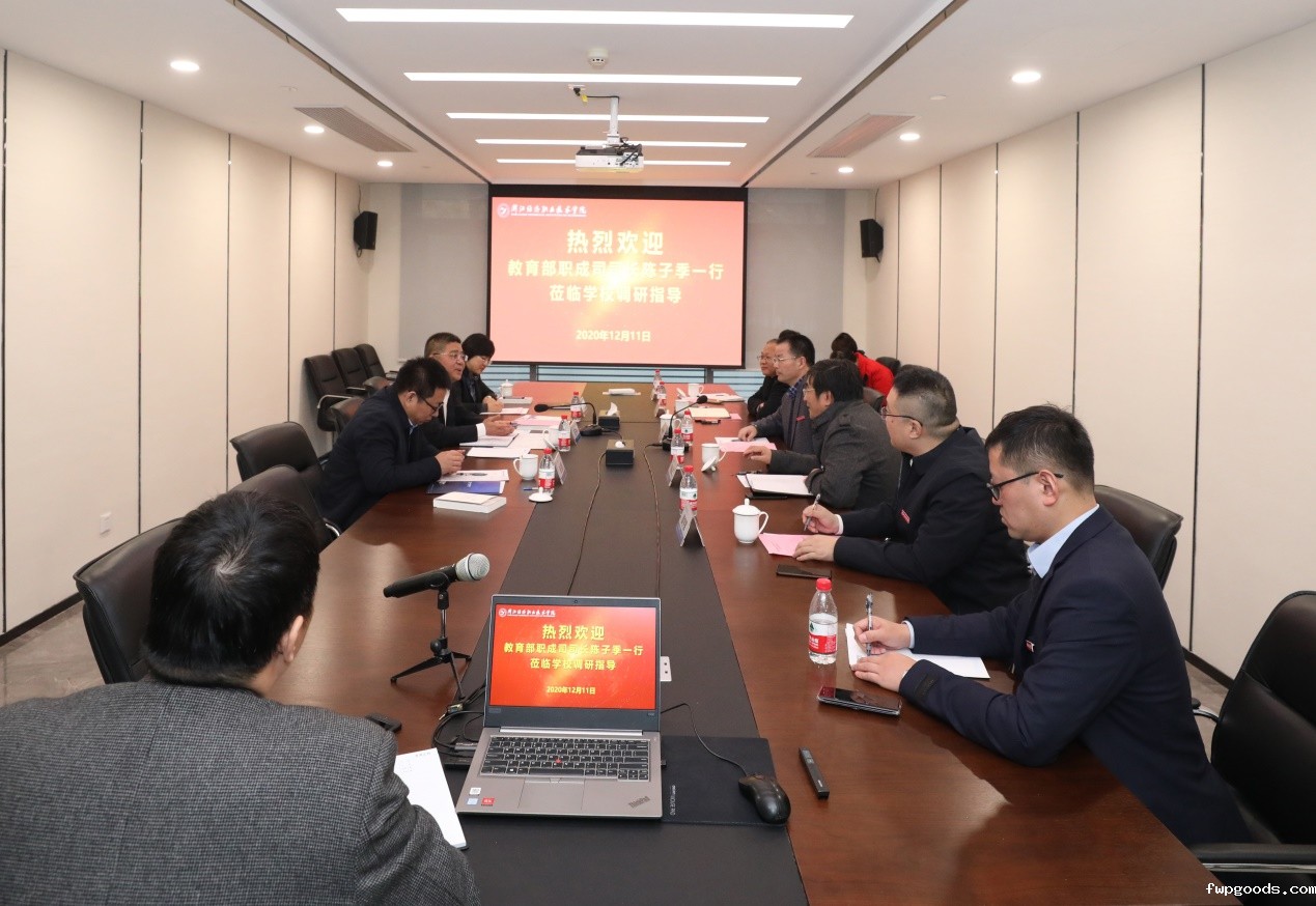 12月11日,教育部职业教育与成人教育司司长陈子季,在该司办公室主任高阳、综合改革处处长任占营的陪同下,来校调研指导。