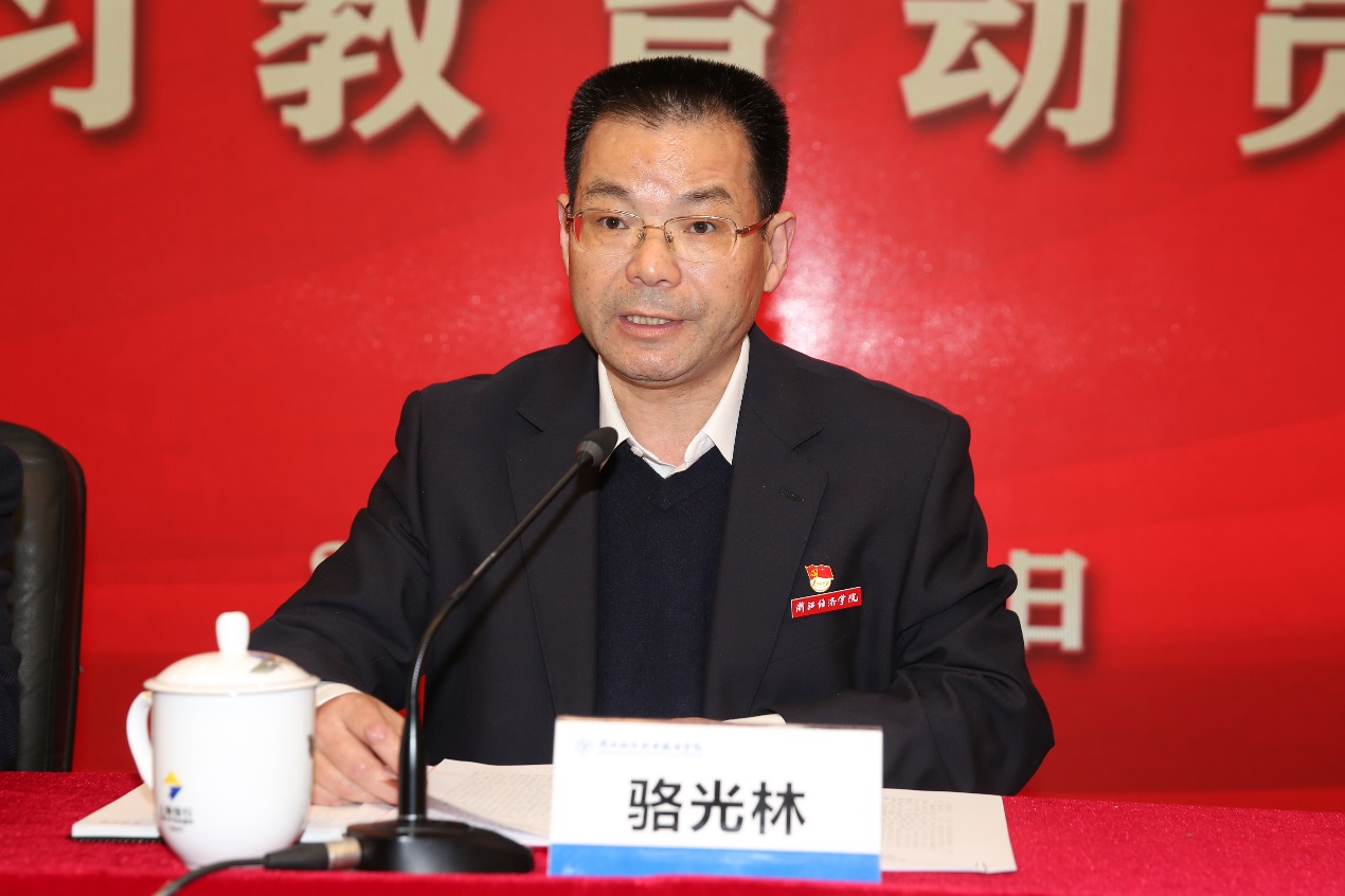 骆光林指出,2021年是中国共产党成立100周年,习近平总书记在党史学习教育动员大会上的重要讲话,系统回答了“为什么学、学什么、如何学”的重大问题,为我们抓好学习教育指明了方向。围绕立德树人根本任务和“为党育人、为国育才”的初心和使命,学校党委把开展党史学习教育作为当前一项重大政治任务来抓,要把学习党史的精神动力和坚定自信转化为推进学校高质量发展的强大动力,坚持党建引领、“双高”导向,开创学校高水平发展新局面。为了贯彻落实中央、省委和集团党委的要求,切实开展好我校党史学习教育,骆光林讲了四点意见。