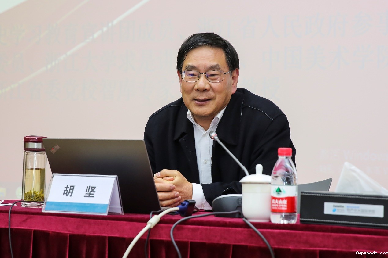 4月14日下午,浙江省委党史学习教育宣讲团成员、浙江省人民政府参事胡坚来校作党史教育专题报告,校领导班子、中层干部和组织员参加了报告会。