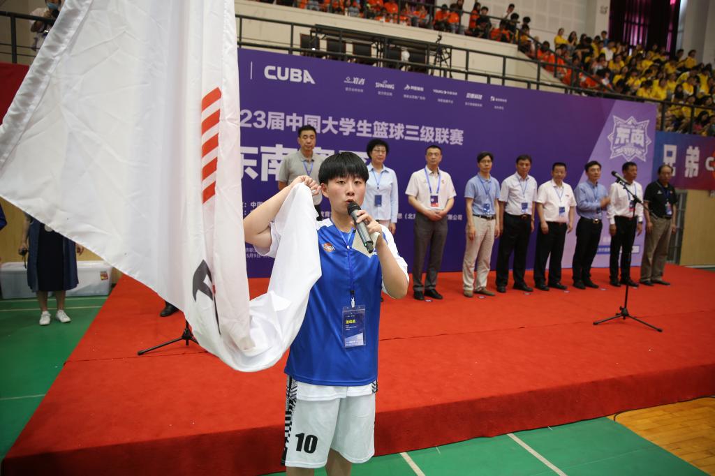中国大学生体育协会张燕军副主席宣布第23届中国大学生篮球三级联赛(东南赛区)开赛。
