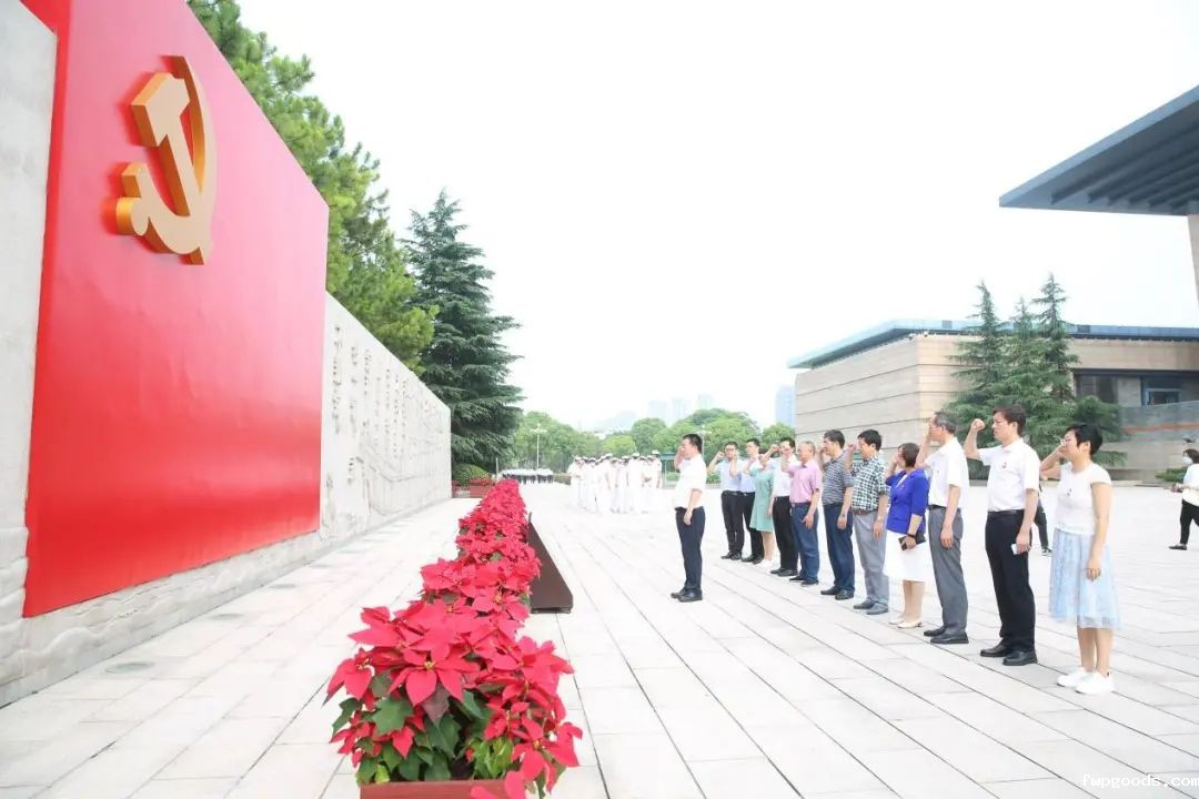 在入党誓词墙前,面向鲜红的党旗,全体中心组成员右手高擎,庄严宣誓,铭记入党初心,坚定理想信念,汲取奋进力量。