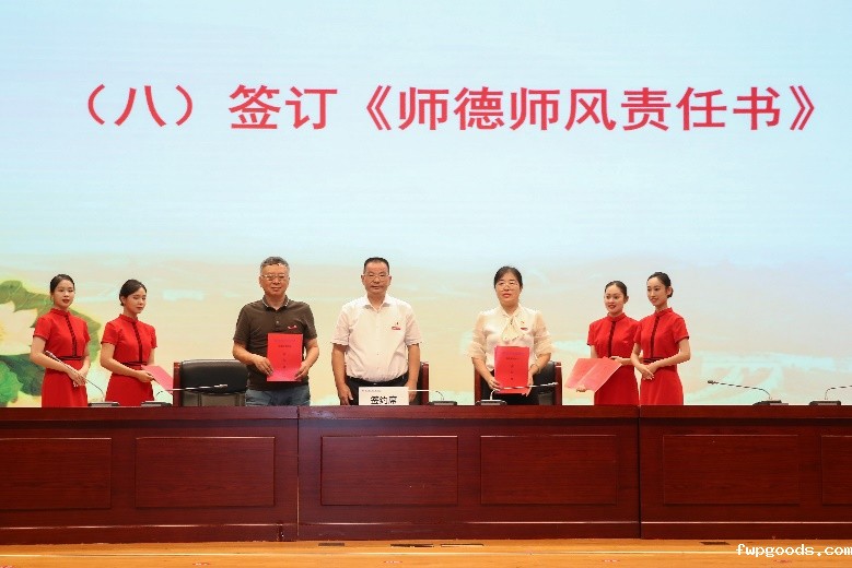 为了深入推进师德专题教育专项行动,会议安排了《师德师风责任书》签订环节,党委书记骆光林分别与各党总支的相关负责人签订了责任书。作为“惠民工程”举措之一,骆光林在会上向教师代表发放了午休毯。