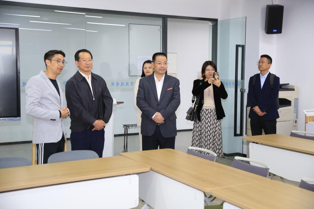 陈存法一行先后参观了学校汽车检测维修实训室、商贸流通学院实训室、梦想创业学院,在实地走访交谈中深入了解学校专业建设、产学合作及创新创业教育等情况。